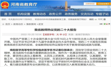 1.党建引领,学习赋能。党的二十大胜利召开以来,我系通过多种方式认真学习贯彻党的二十大精神。系党总支书记秦玖刚热议党的二十大报告的学习体会被河南省教育厅网站发表,在全系掀起了学习党的二十大精神的高潮。通过开展党课,召开教学工作会,在师生中宣讲党的二十大精神。组织党员干部参加“奋进新征程 建功新时代”在线答题活动,收看党的二十大精神专题培训,把广大师生的思想和行动统一到党的二十大精神上来,为教育教学工作发展注入强大动力。
