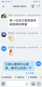 此次疫情,无数医护人员勇敢地站出来,当起了人民群众的保护神,用生命诠释医学生的责任,这本身就是一部生动的职业道德教育活教材。想到这一点,在开学前几天,邱老师利用短视频和学生“见面”,鼓励学生向奋战在一线的医护人员学习,把责任和使命牢牢刻在心里。