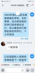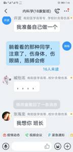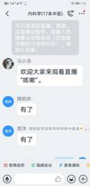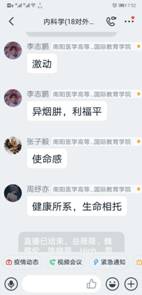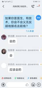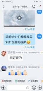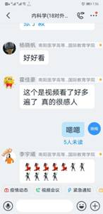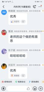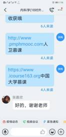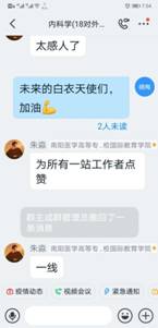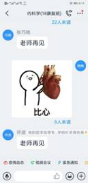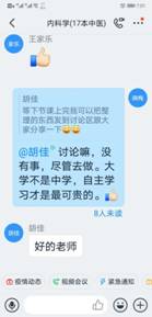 在“学习通”平台建课时,在所有专业知识点开始之前,她给同学们用振奋向上的视频制作“开学第一课”。第一次上课时,讲完了内科学绪论后,用身边同学、自己爱人王雷舍身投入抗“疫”的故事鼓舞启发学生、感动学生。
