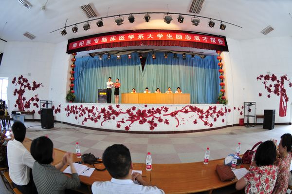为了培养青年学子继承中华民族奋发图强、励精图治、助人为乐、永担重任的优良传统,在中国共产党建党90周年来临之际,2011年5月18日,临床医学系举办了一场以学习身边榜样为主题的大学生励志成才报告会。系党总支书记张平、副主任秦玖刚和1000多名师生参加。