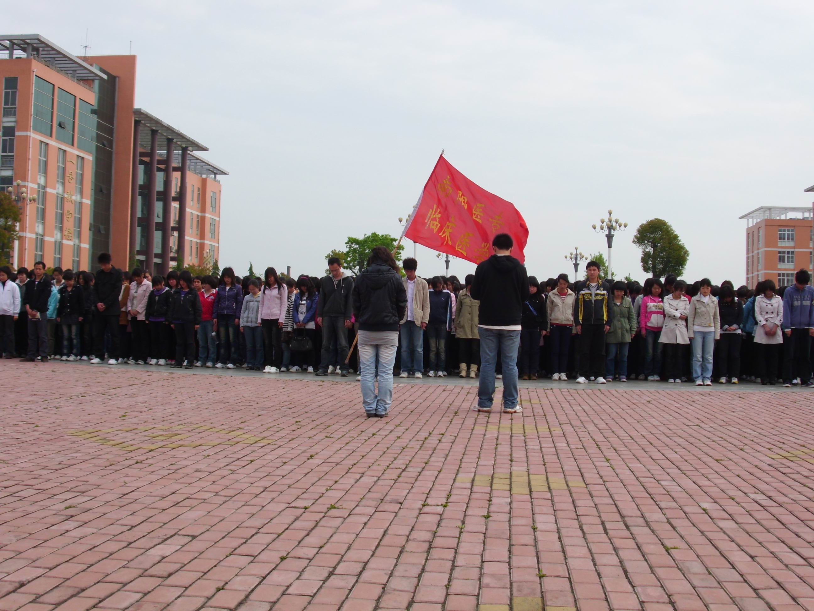 为表达对“4.14”玉树大地震遇难同胞的深切哀悼,寄托我系师生的无限哀思,4月21日,临床医学系师生分别在主校区文化广场,东校区图书楼前举行为玉树地震遇难同胞默哀捐款仪式。4:30分,临床医学系3000多名师生肃立默哀,之后在写有“玉树,为你祝福,为你祈祷”的条幅上郑重签上自己的名字,祈求逝者安息,生者坚强。