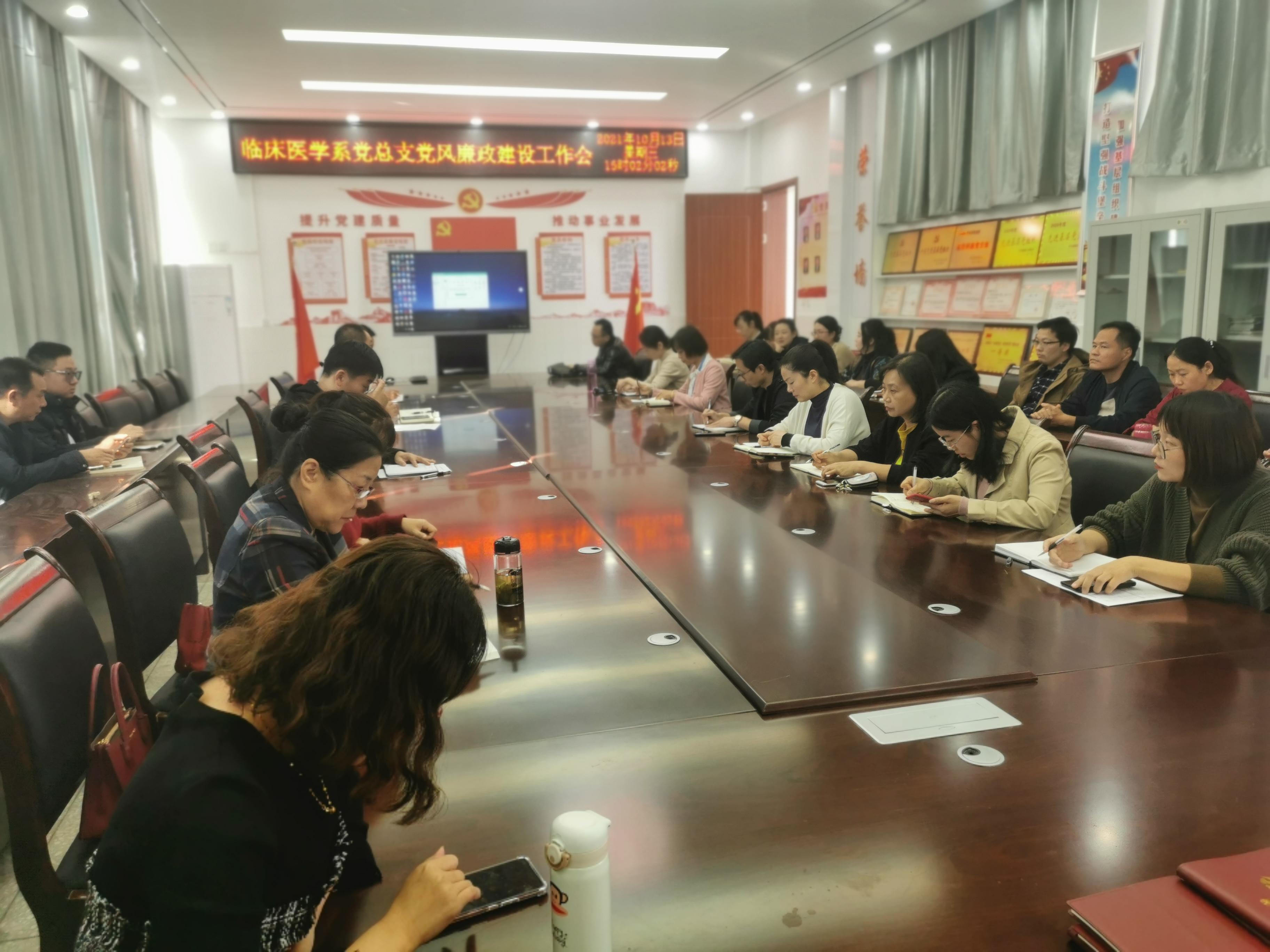为了进一步强化基层党风廉政建设,增强党员廉洁自律意识,10月13日下午临床医学系党总支在408会议室召开党风廉政建设工作会,全体党员参加了此次会议。