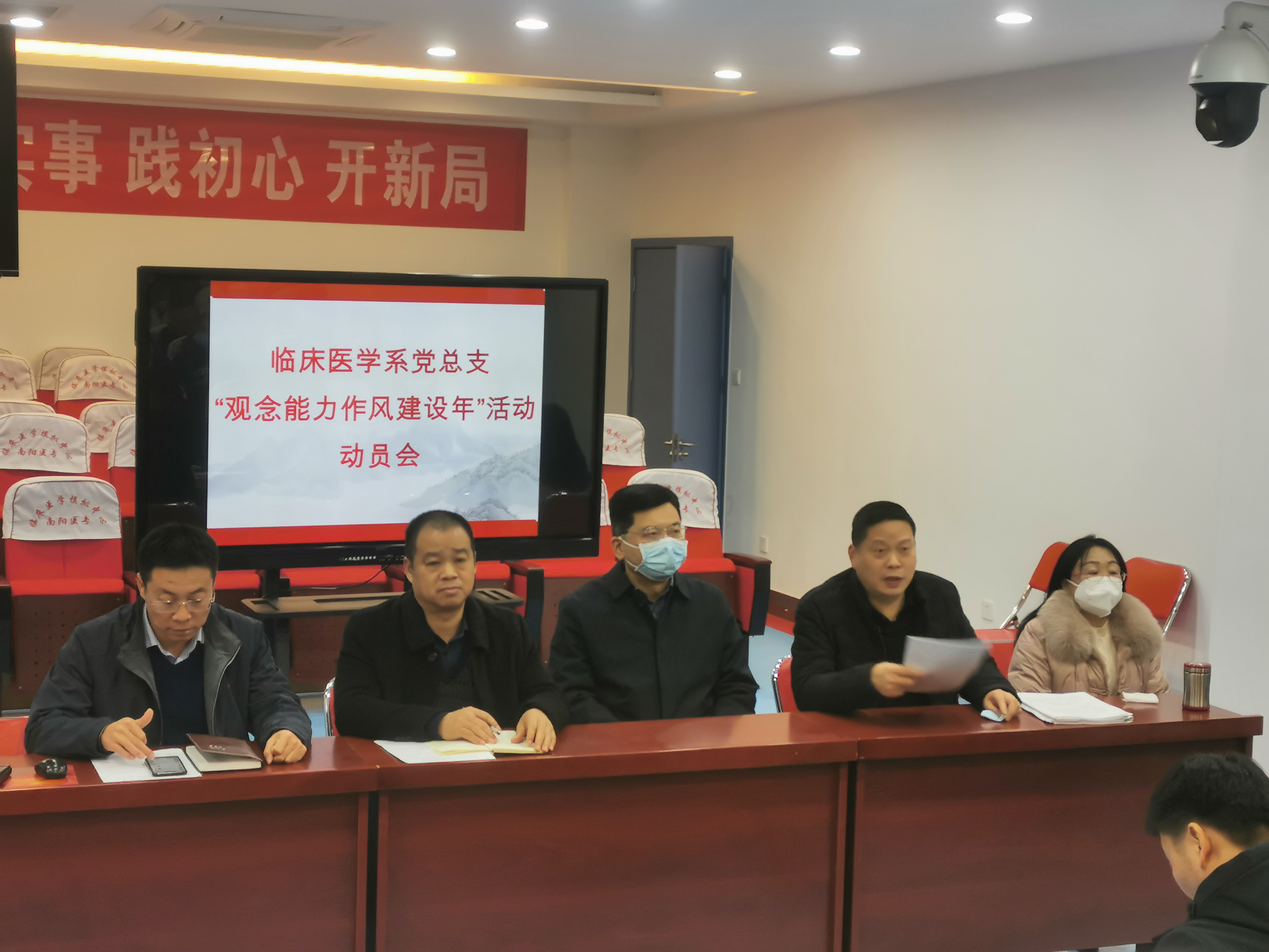 首先,临床医学系党总支书记秦玖刚传达了上午学校“观念能力作风建设年”会议精神,要求全系开展以“创新观念、提升能力、提升效率、优化作风、优化环境”为主题的“观念能力作风建设年”活动。随后,王照林主任领学了学校开展“观念能力作风建设年”活动实施方案。最后,秦书记要求系里要成立活动工作组,结合部门实际制定活动方案,各部门要积极宣传动员;广大党员干部要对照先进典型和榜样标杆,坚持刀刃向内、自我革命,认真查找问题;党总支成员要结合年底组织生活会总结交流经验,开展批评和自我批评,提升管理水平;各位教师要不断提升教学质量,提高育人水平,围绕复建张仲景国医大学和河南省副中心城市建设谈认识、找问题、说根源、提建议。