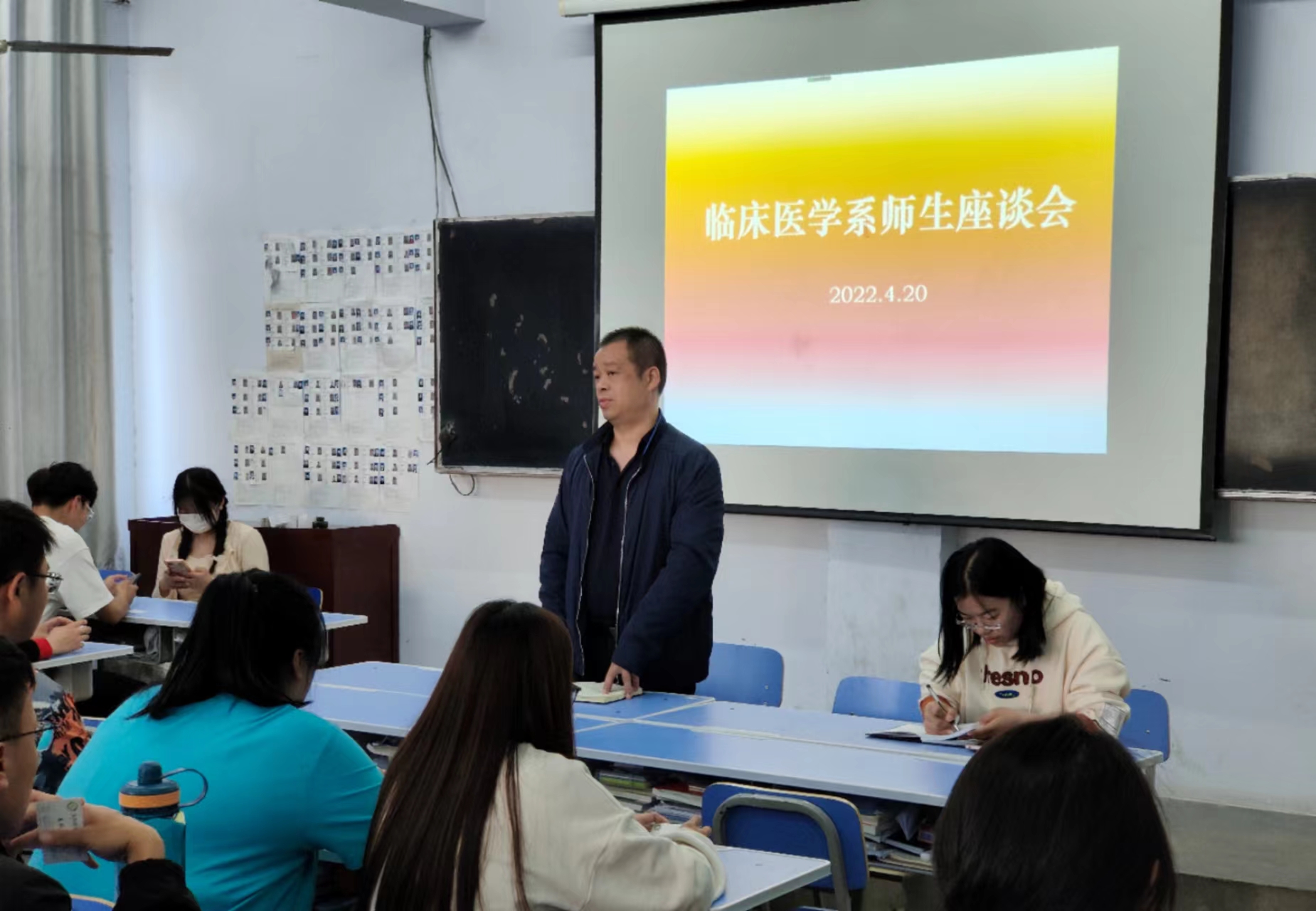 为进一步推动“观念能力作风建设年”活动走深走细,落实立德树人根本任务, 4月20日下午,临床医学系在孔明校区召开21级师生座谈会。系党总支书记秦玖刚等系领导、21级全体辅导员、学生会主要干部和各班级100余名学生代表参会。