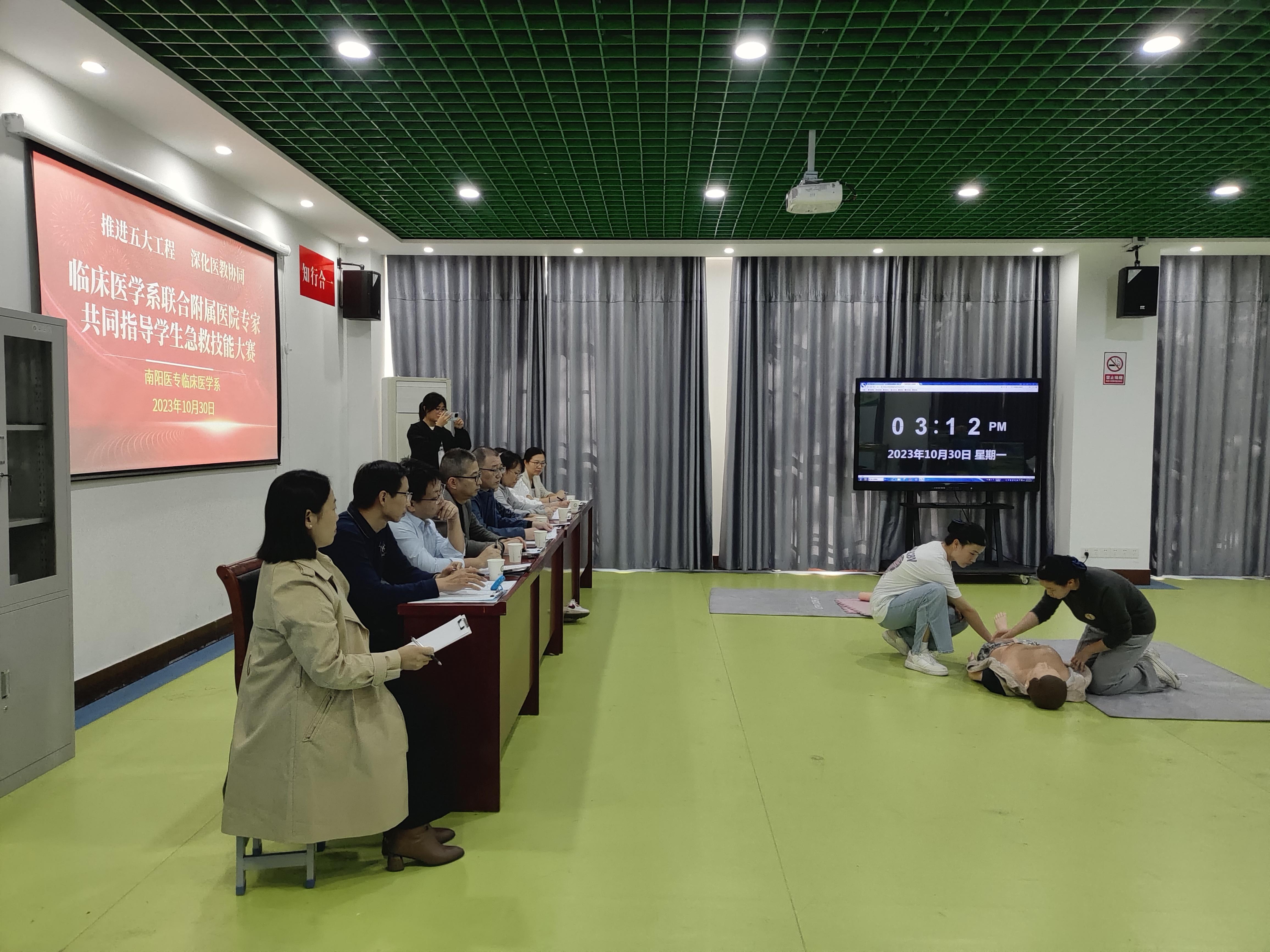(撰稿:侯萍)临床医学系紧紧围绕学校1233工作布局,大力推进“五大工程”,不断深化医教协同,提升人才培养质量。为更好地备战2023年第二届全国现场应急救护技能大赛,让选手的操作更准确,充分体现出现场急救的真实有效性。10月30日下午,临床医学系邀请南阳医专附属医院的骨科主任曹志、发热门诊护士长崔凌燕、急诊外科张岭等专家给我校参赛选手进行技术指导。本次活动由临床系副主任周毕军主持,全体指导老师共同参与,部分知行社学员观摩学习。