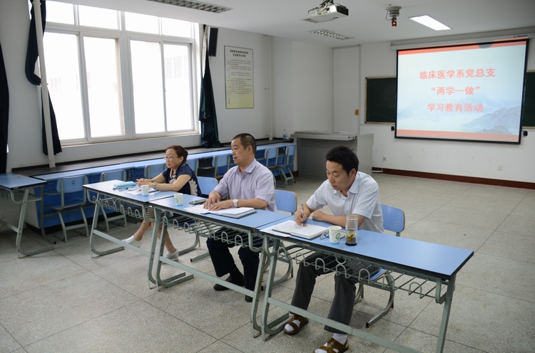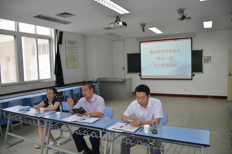 2016年6月24日下午,临床医学系党总支召开全体党员大会,组织开展“两学一做”学习教育。副书记张立润主持会议。