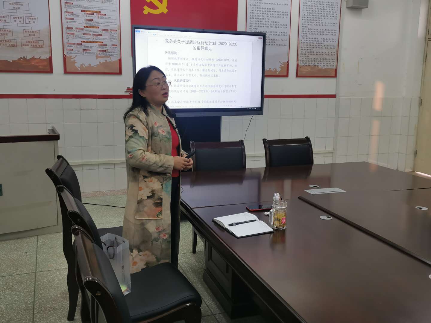 会上,李玲副主任深入解读了《教务处关于提质培优行动计划(2020-2023)的指导意见》,引导党员先学先行,提出了提质培优划项目申报思路。张立润副主任传达了校党委组织部《关于做好巡察反馈问题(组织建设部分)整改工作的通知》,通报了系党总支学习强国学习情况。