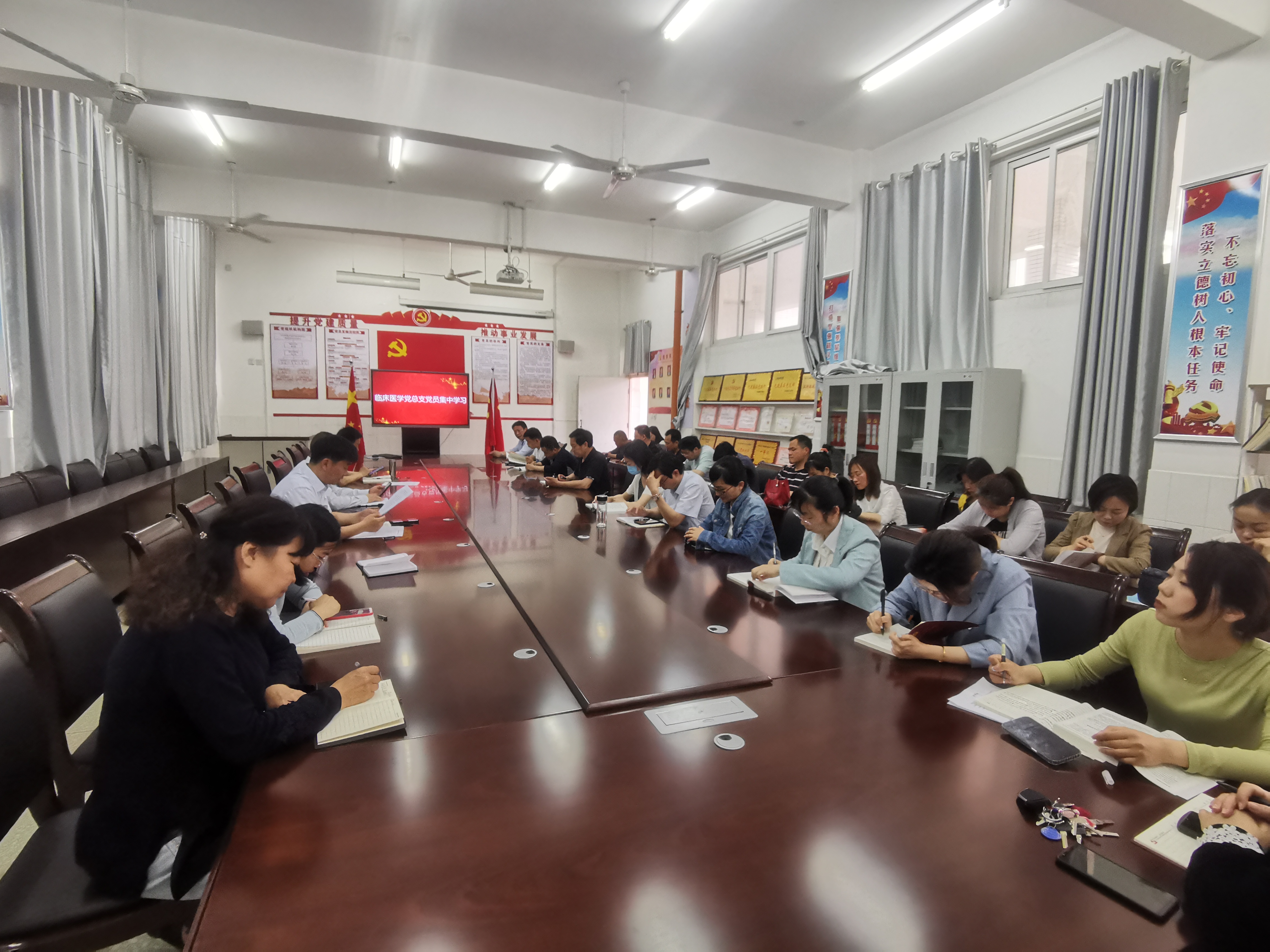 2021年5月12日下午,临床医学系党总支在4号教学楼408会议室,召开全体党员集中学习会,会议由系党总支书记秦玖刚主持。