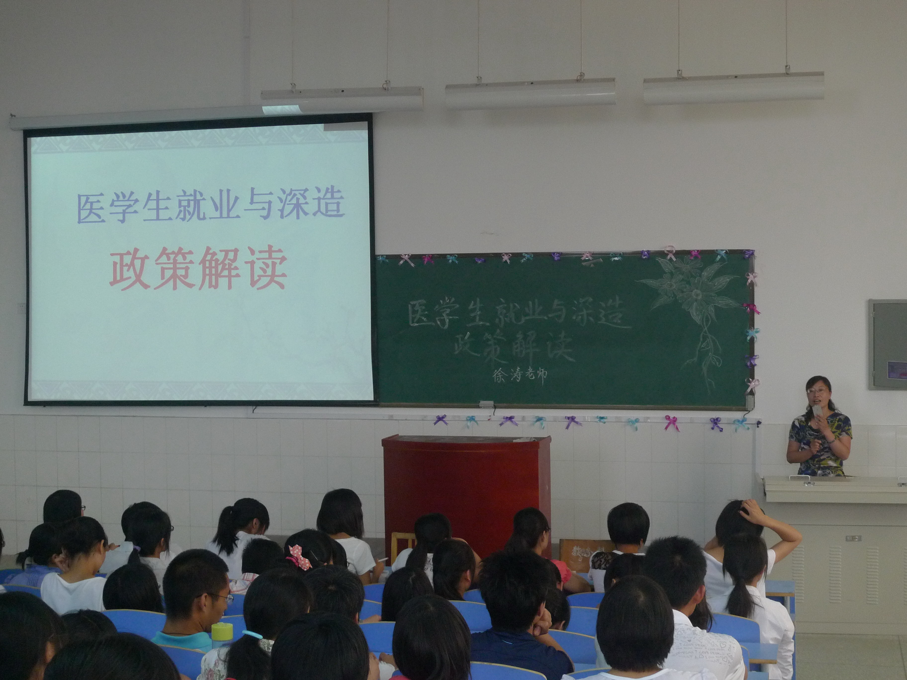 为了让我校医学毕业生,更充分了解国家有关就业与深造优惠政策,临床医学系于2012年5月21日,下午4:40在四号教学楼501教室成功举办了《医学生就业与政策解读》专家讲座。