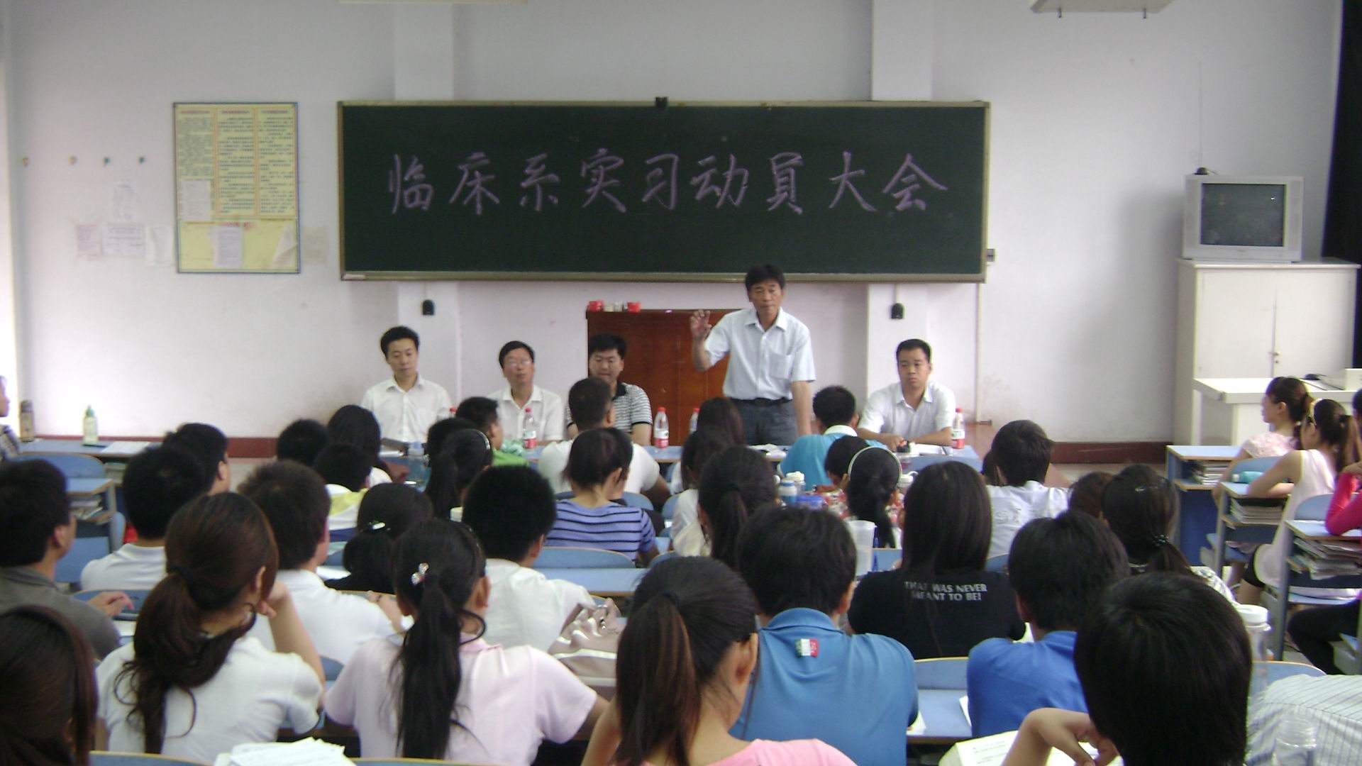 6月23日下午,临床医学系在主校区1号教学楼举行实习动员会。学生处副处长李金里、实习科长刘鹏应邀出席并讲了话,临床医学部分领导和辅导员以及即将实习的班级学生代表100多人与会。会议由系副主任秦玖刚主持。